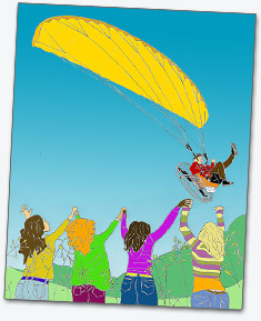 Campers will be treated to an unforgettably inspiring experience as they watch him land, gather for a fun talk about the record breaking flight, then be organized into a giant formation which he will photograph as he flies off.